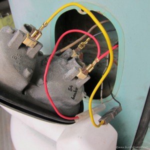 At the rear of the bus you will need to identify wire colours and how they are connected to the existing light housings. We had genuine Hella units which have male terminals on the back of the housings. Repro parts sometimes differ slightly with pigtails but usually always involve a 1/4″ crimp somewhere.