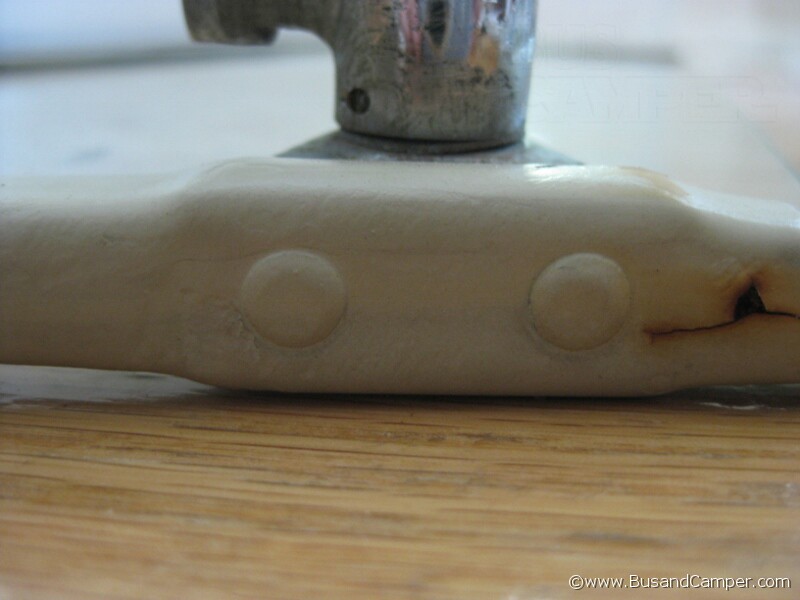 This is one reason to fit the new repro vents, this small triangle is quite visible on the eye line of the Bus and when corroded like this can detract from the overall look. obvious which is which;