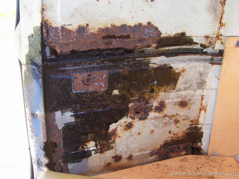 Looks happy enough, sort of complete, bumpers, lights, pop top there, all the doors and wheels etc missing the front badge and that trim around the intake mesh is not right but these are small items easily fixed. What we’re after is the base metalwork – are there any panels that need replacing and if so how many and where are they. This is a supposed dry state bus so we’re not expecting too many issues.